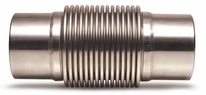 Центральная часть компенсационной вставки — металлический сильфон, похожий на гармошку или цилиндрическую пружину с равномерными кольцевыми гофрами. Длина гофрированной части — от 100 до 400 мм.